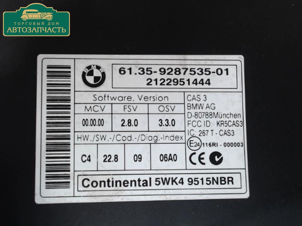 Блок управления BMW X1 E84 (2009-2015) 2.0; Диз.; D; МКПП 6 ст.; Кроссовер; Прим/Арт: Блок управления CAS /25039897 |